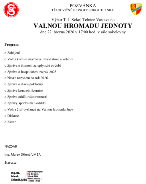 V únoru slaví Zdeněk Konečný 60 let a Marek Sklenář 50 let. TJ Sokol Telnice srdečně blahopřeje.